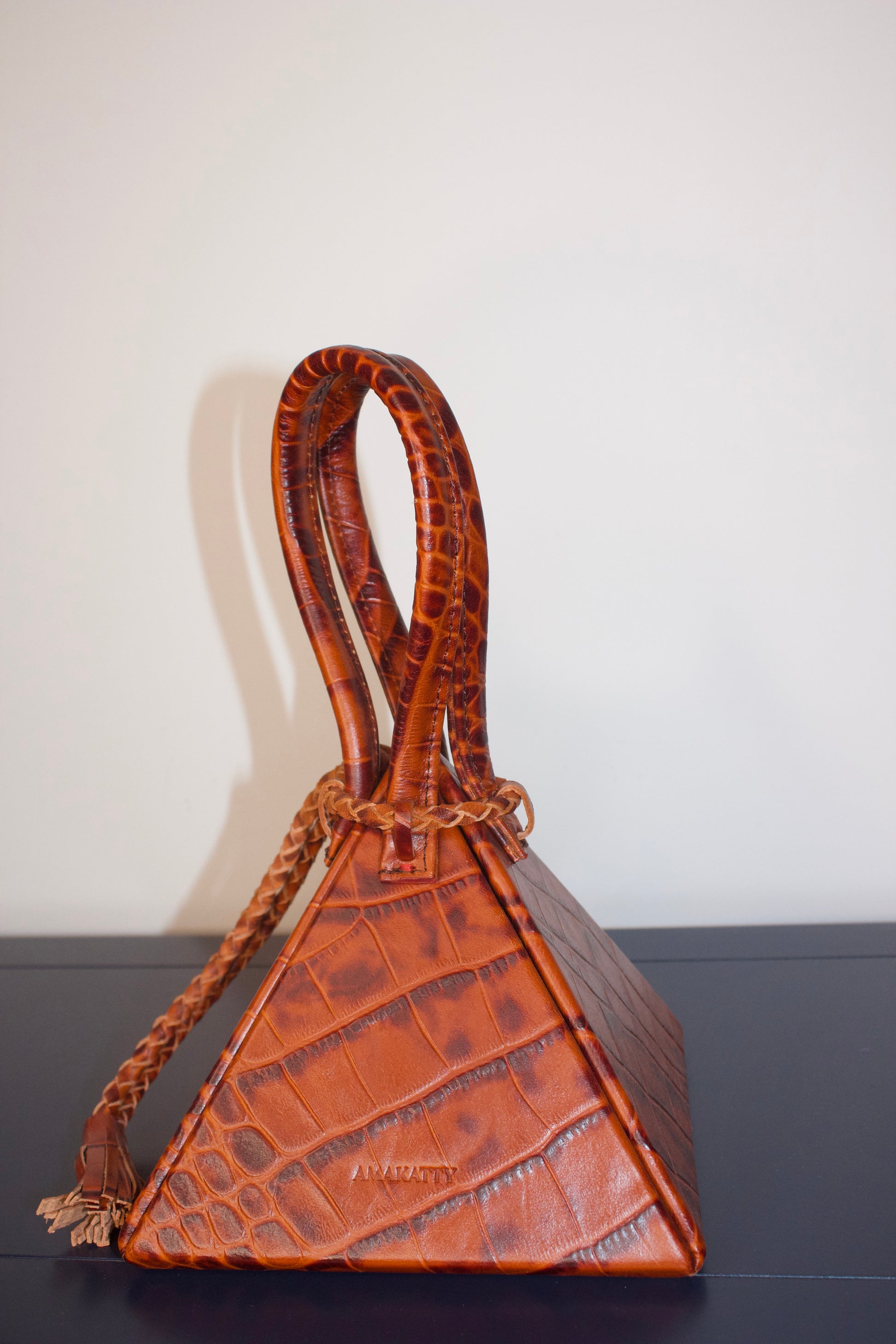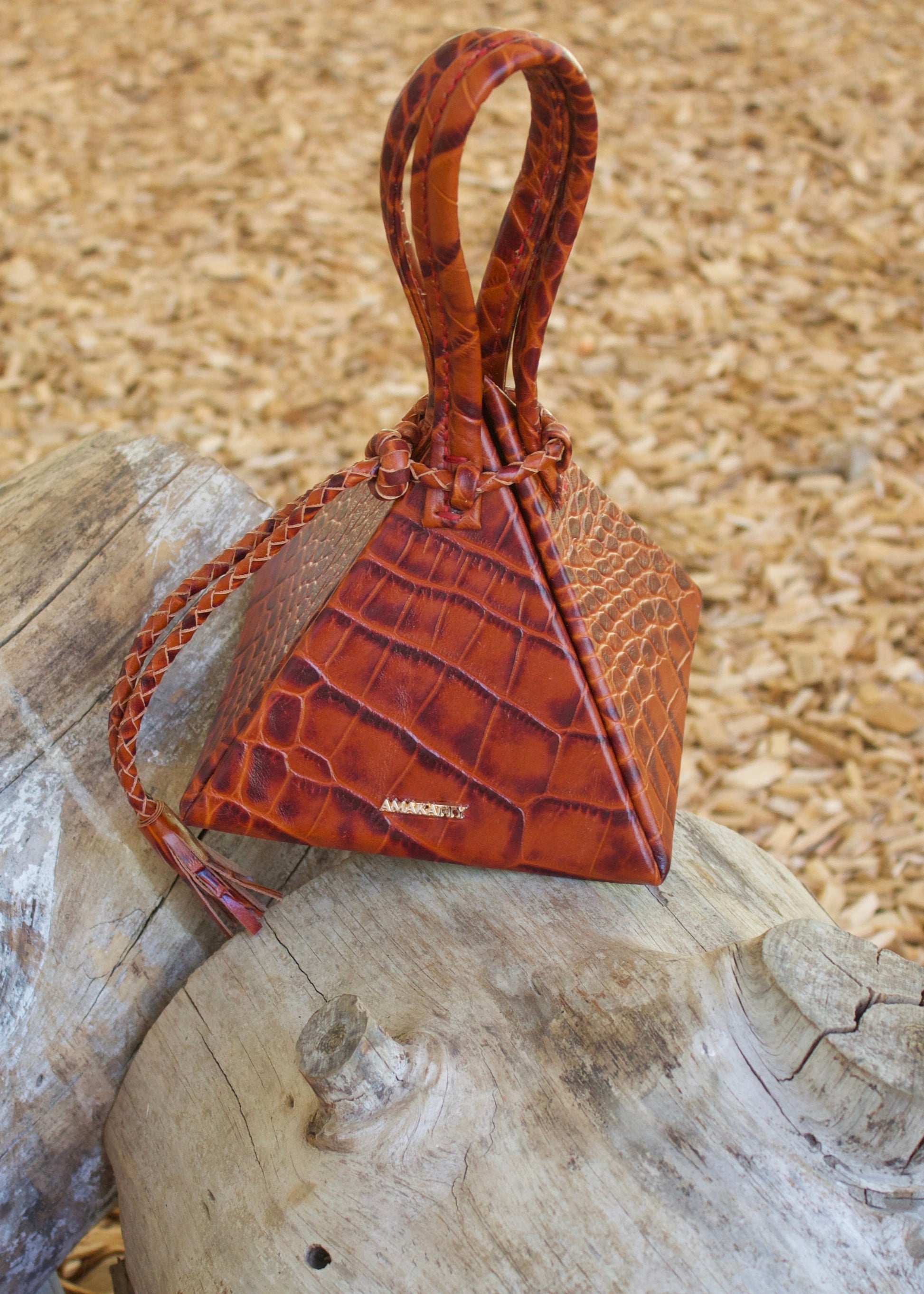 Le grand Débédi 16 sublimé par un cuir recyclé et façonné à la main au Sénégal. Son design pyramidal unique et son allure contemporaine en font l'accessoire parfait pour attirer tous les regards.