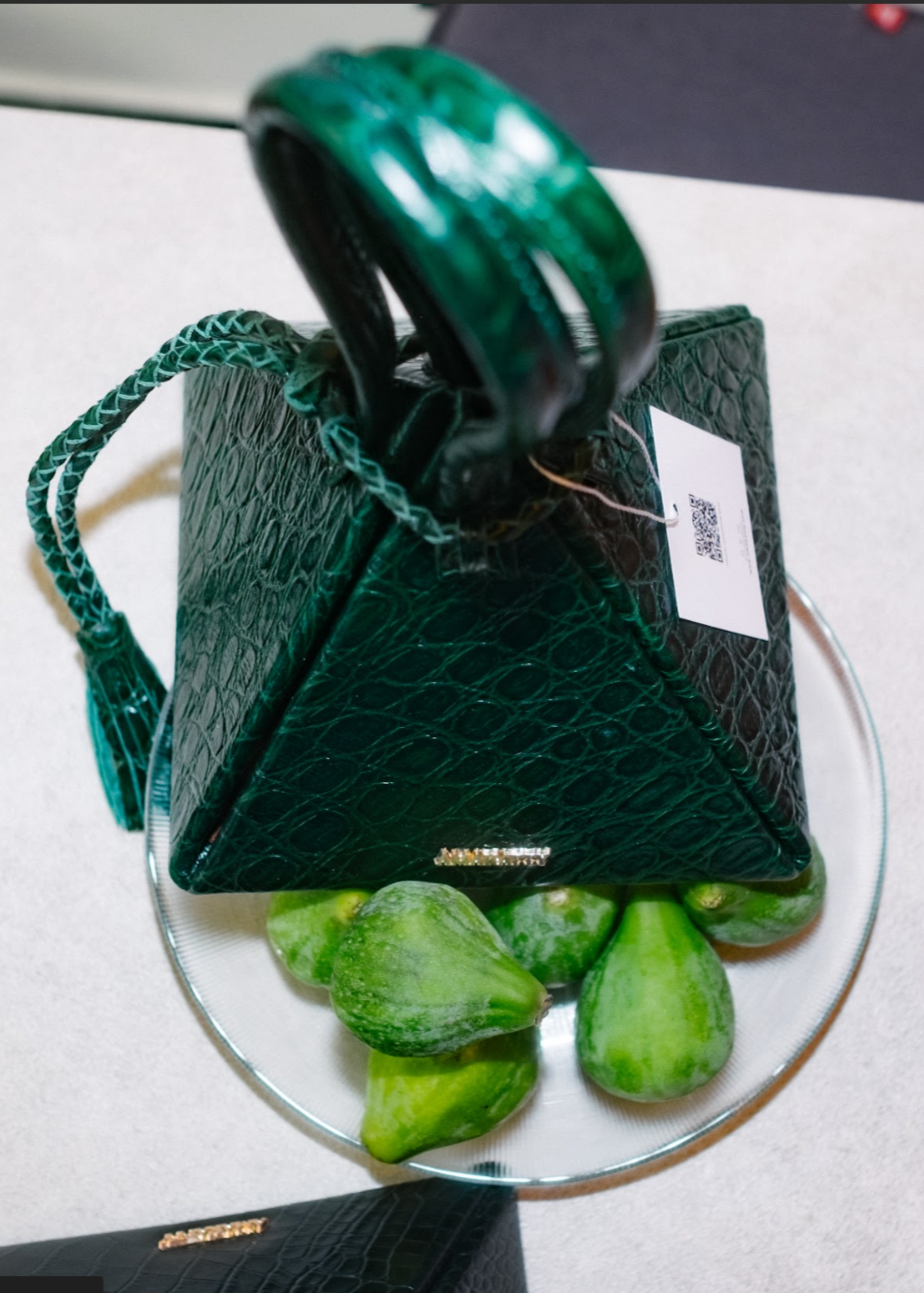 Le grand Débédi 16 sublimé par un cuir recyclé et façonné à la main au Sénégal. Son design pyramidal unique et son allure contemporaine en font l'accessoire parfait pour attirer tous les regards.