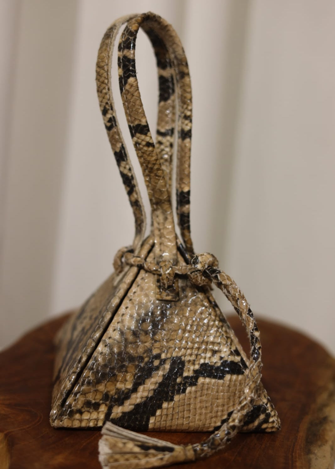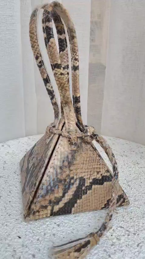 Laissez-vous séduire par l'attrait irrésistible de notre sac Débédi, sublimé par un cuir recyclé et façonné à la main. Son design pyramidal unique et son allure contemporaine en font l'accessoire parfait pour attirer tous les regards.
